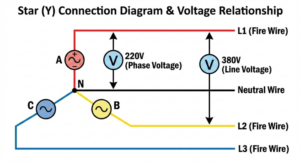 这就解释了我们生活中遇到的家用220V和工厂380V. 220V是相电压,我们家里的电器就是接在一根火线和一根零线之间的(当然有时也有地线). 而380V是线电压,工厂里的三相大电机直接接在两根火线之间,不需要零线. 注意到了吗?380V正是220V的根号3倍.